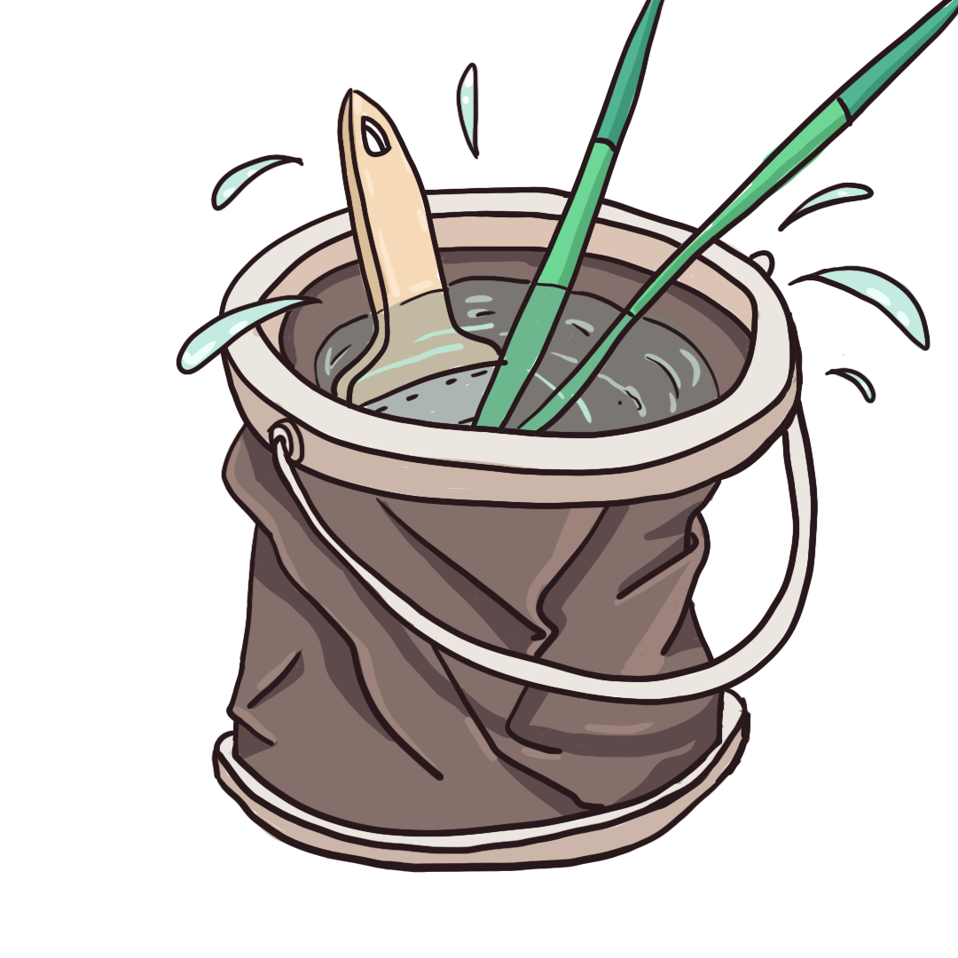 (笔不要过长时间放置在水桶里,会减少笔的使用寿命,而且画画的过程会容易溢出水来)