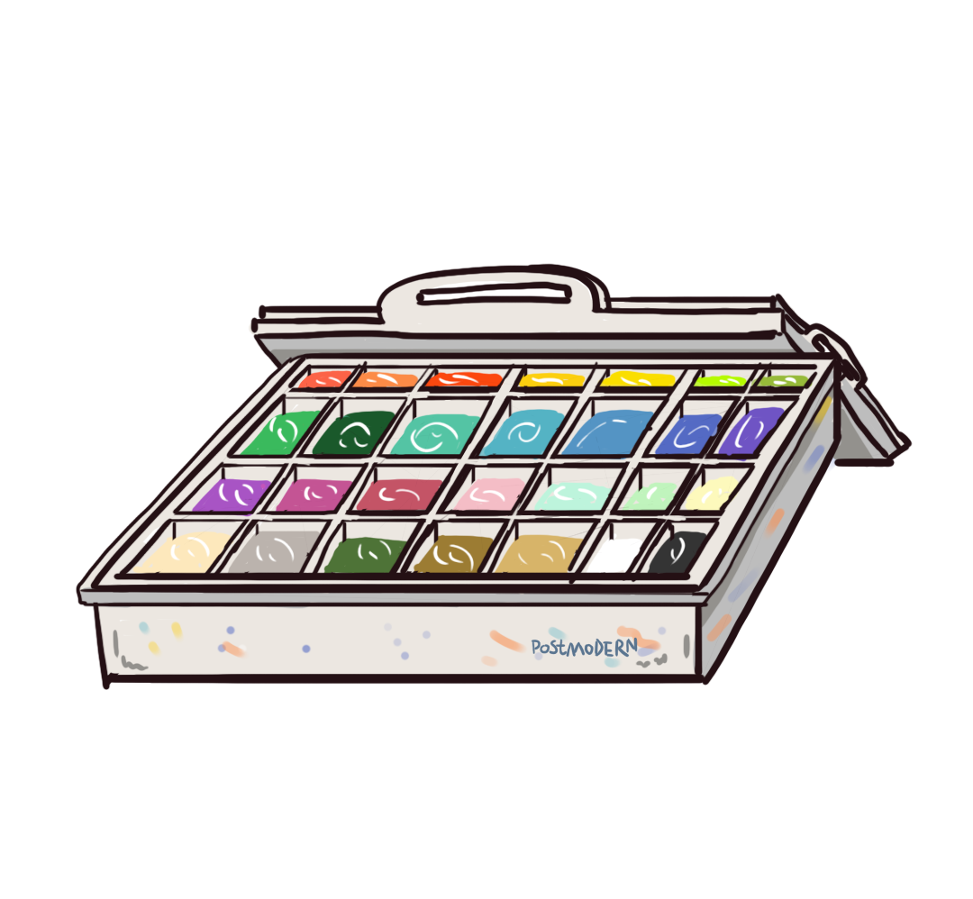 开始接触色彩的同学一般先用水粉颜料,中后期时可以购买丙烯颜料,平时要多买些白色颜料作为勾兑补充。